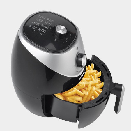 در این سرخ کن دو ولوم چرخشی جهت تنظیم دما و زمان تعبیه شده است . همچنین در قسمت بالای این سرخ کن 8 منو پخت پیش فرض نیز وجود دارد که شما می توانید براساس مواد غذایی درون مخزن آن را انتخاب نمایید . بدین گونه دما و زمان مورد نیاز به صورت اتوماتیک تنظیم میگردد .