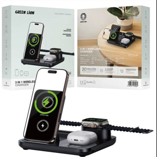 استند وایرلس شارژ سه کاره گرین لاین Green Lion 3 in1 Multifunctional Wireless Charger