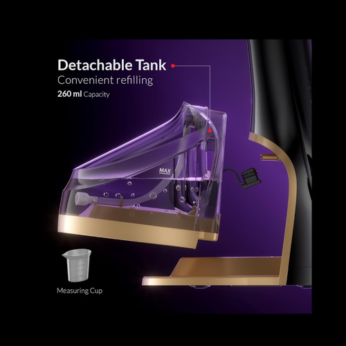 - مخزن آب 260 میلیلیتری شفاف و جداشدنی: پرکردن آسان و مشاهدهی راحت میزان آب برای اتوکشی بدون وقفه.